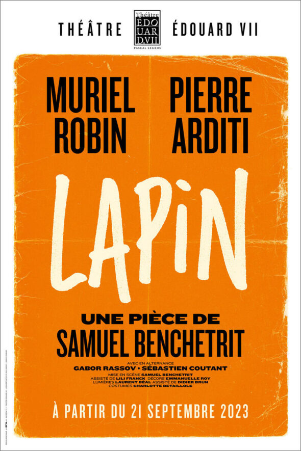 – Lapin, 2023, création au Théâtre Edouard VII dans une mise en scène de l’auteur et interprété par Muriel Robin, Pierre Arditi, Gabor Rassov, et Sébastien Coutant